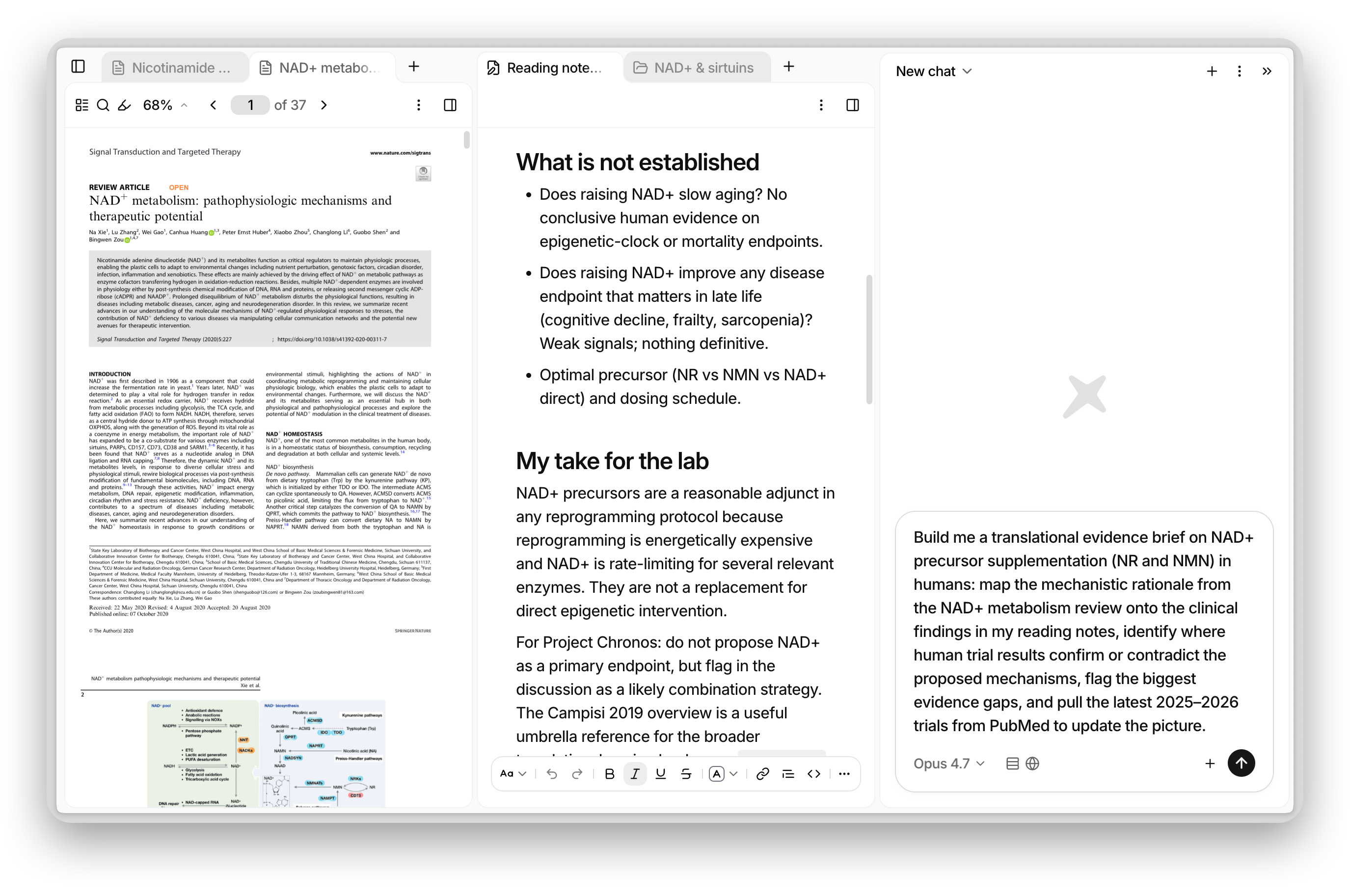 Give it a goal like completing a literature review or mapping the competitive landscape for a drug class and Anara will search your library, the web and academic databases, synthesize what it finds to return a cited, verifiable document you can edit.
